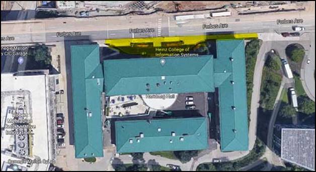 This work will close the main entrance to Hamburg Hall, the Governors Drive, and the sidewalk on the South side of Forbes Ave per the below highlighted area.