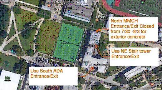 Please use the South entrance/exit or Northeast stair tower entrance/exit during this time.